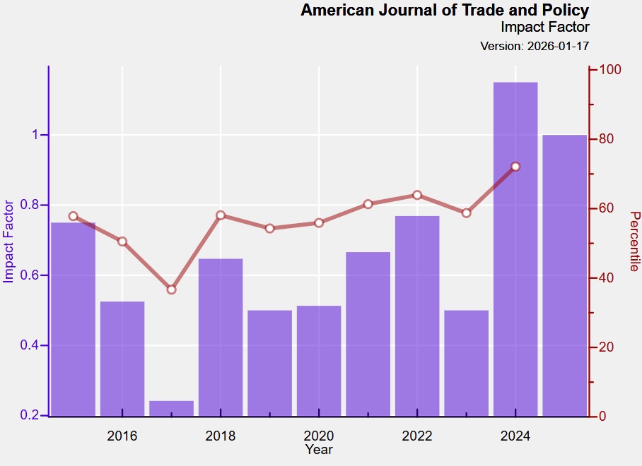 The graph (Scientometric Analysis by Exaly) shows changes in AJTP's impact factor and its corresponding percentile, compared with the entire literature. Impact Factor is the most common scientometric index, defined as the number of citations to papers in two preceding years divided by the number of papers published in those years.